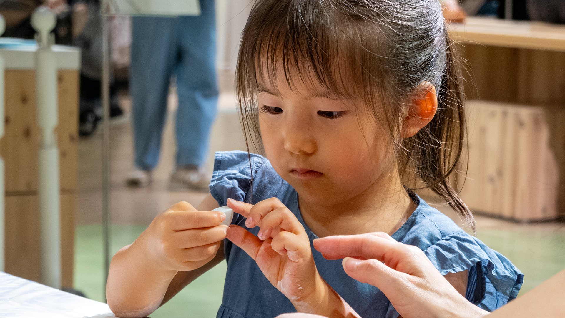 石をピカピカに磨いて首飾りをつくるワークショップを、9月13日、高槻阪急スクエアで実施しました。地元の子どもたち10人が参加しました。