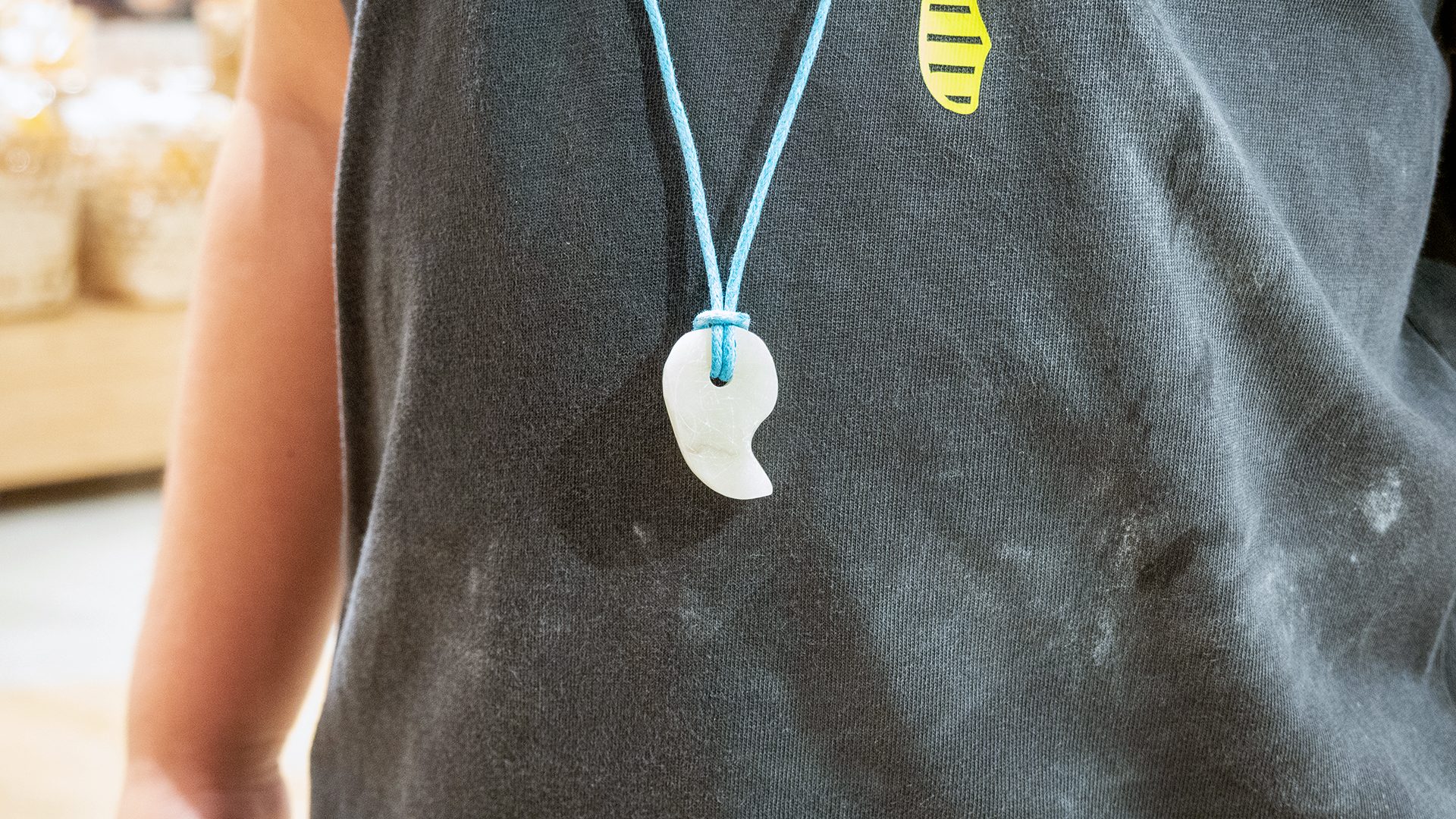 棒やすりで一生懸命削って、勾玉をつくってくれました!